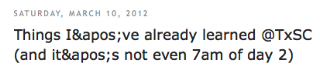 Things I've already learned @TxSC (and it's not even 7am of day 2)
