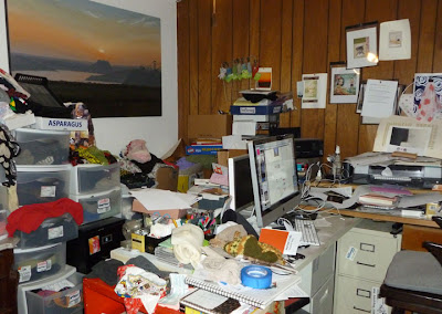 I am very undisciplined when it comes to social media -- I look at my emails, facebook, and twitter first thing in the morning (I've been waking up at 4am!) and sometimes don't surface from it for hours. I also go on them as a "break" when I'm at the money job. Very Bad Behavior. I have tried to not allow myself to go online until I get some art accomplished and have been only moderately successful. Do I need an intervention? Probably... (I also need a visit from the "Hoarders" reality show team! But I know you already thought that when you saw the first photo).