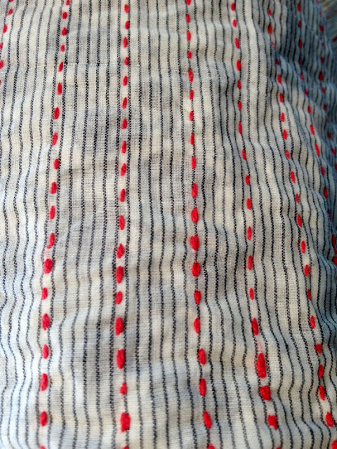 | cotton stripe scarf with stitching and a hint of dots |