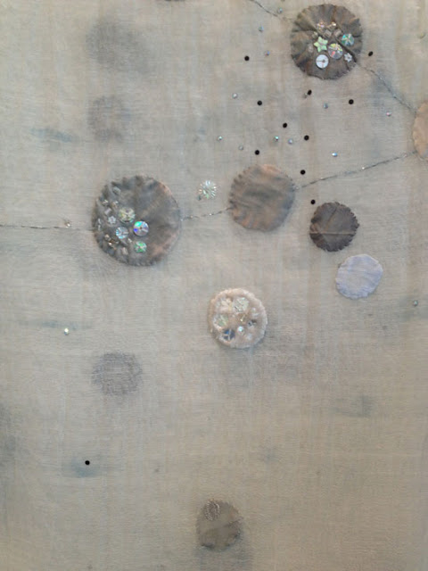 | detail of silk scarf with appliques, sequins and beads |